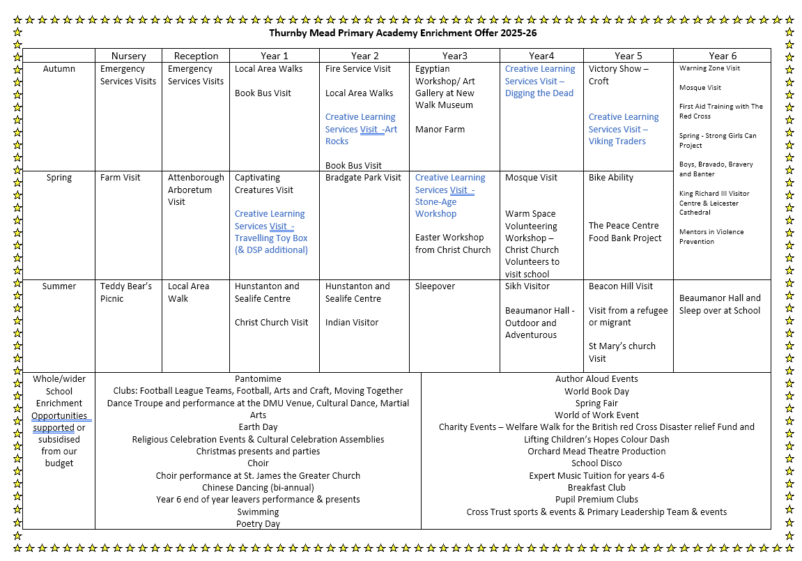 At Thurnby Mead we offer a range of Extra-Curriculum clubs which vary each term. These clubs are run by our school staff.